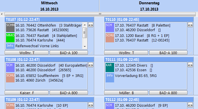 Mit der grafischen Disposition behalten Sie jederzeit den Überblick über die vorhandenen Transportaufträge, Fahrzeuge und Fahrer.