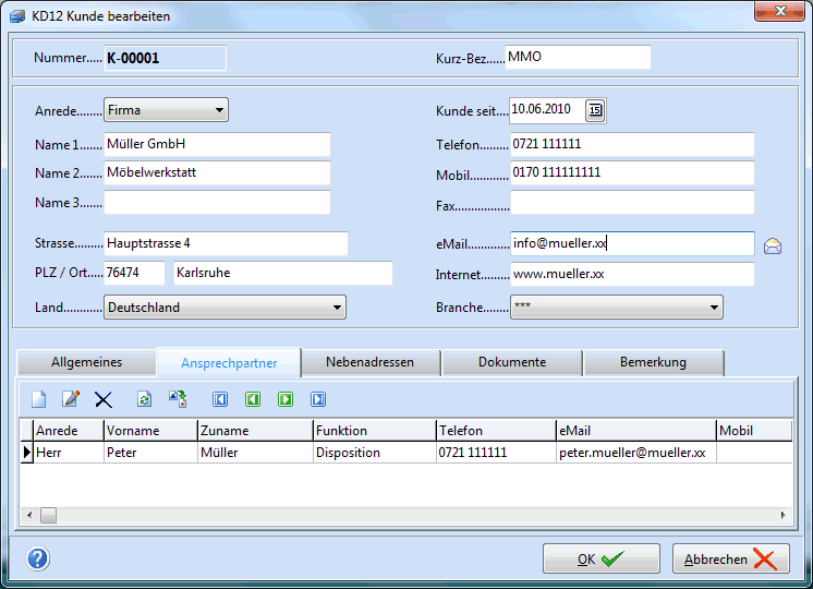 In der Kundenverwaltung werden alle kundenbezogenen Daten gespeichert.