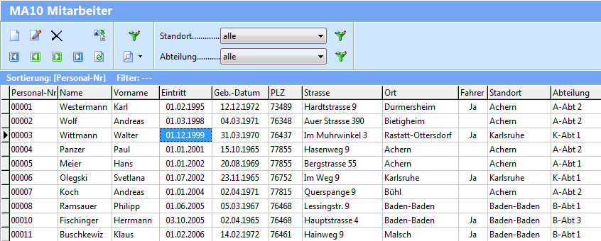 In der Mitarbeiterverwaltung werden alle mitarbeiterbezogenen Daten gespeichert.