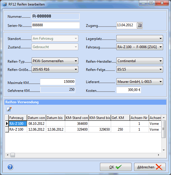 Die Reifenverwaltung in FuCoSys bietet eine komfortable Möglichkeit, alle Reifen in ihrem