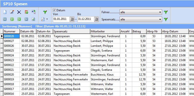 In der Spesenverwaltung werden die anfallenden Spesen der Fahrer erfasst.