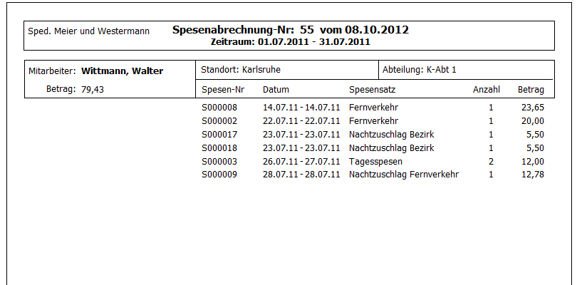 Die erfassten Spesendatensätze bilden die Grundlage für die Spesenabrechnungen, die für
